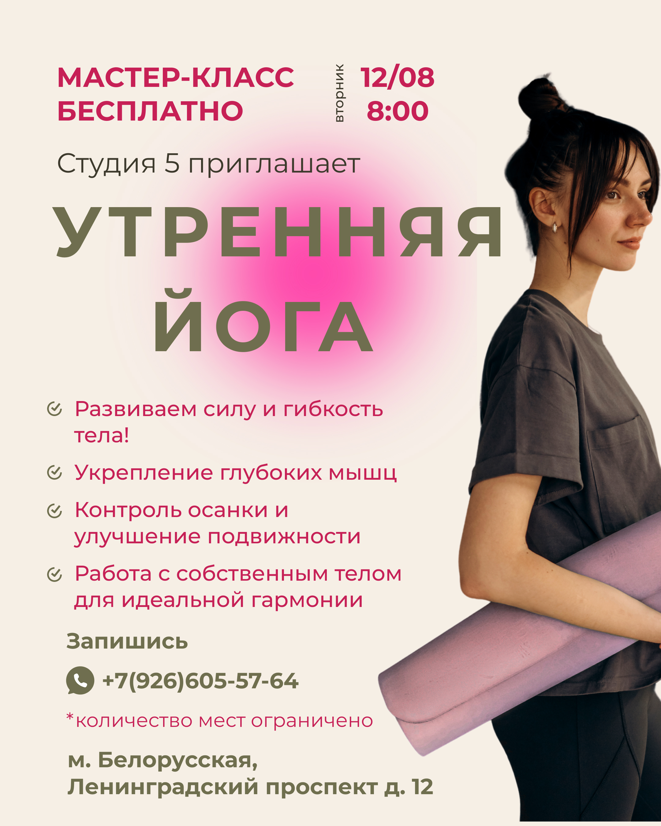 Открытый урок — бесплатно!Йога: мягкий старт дня