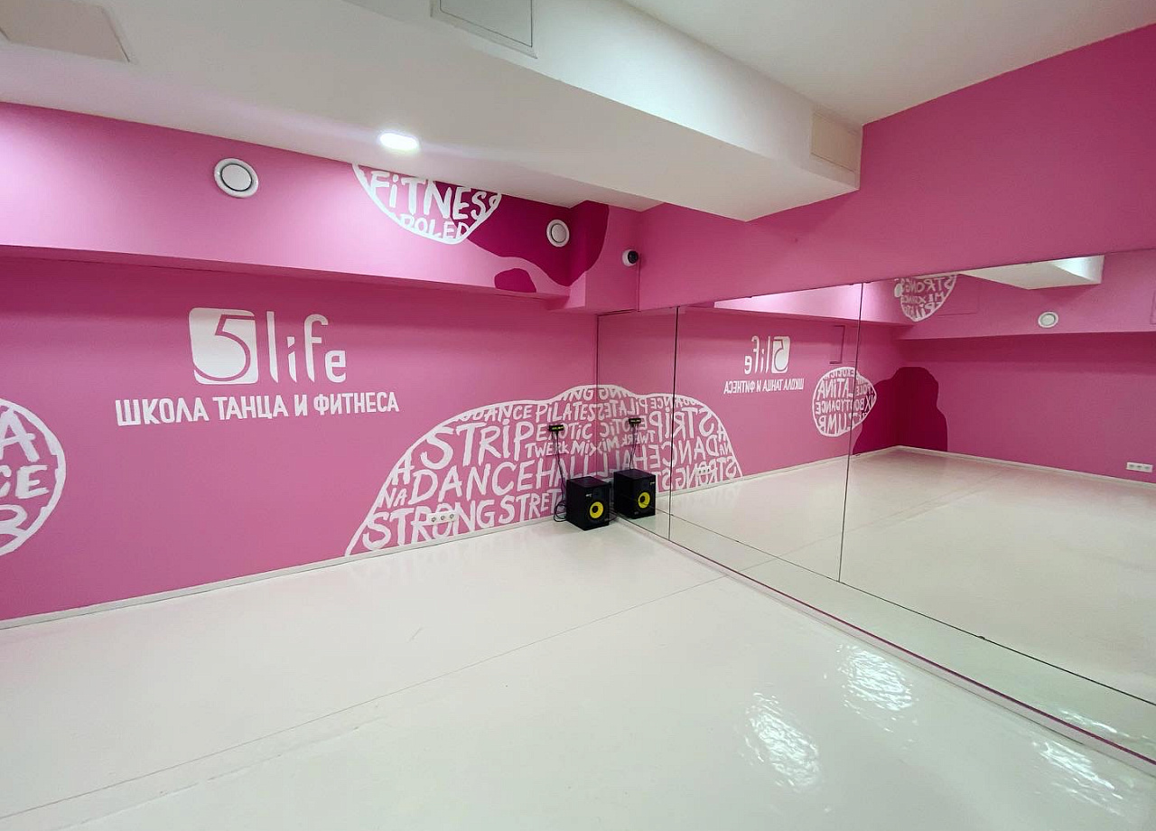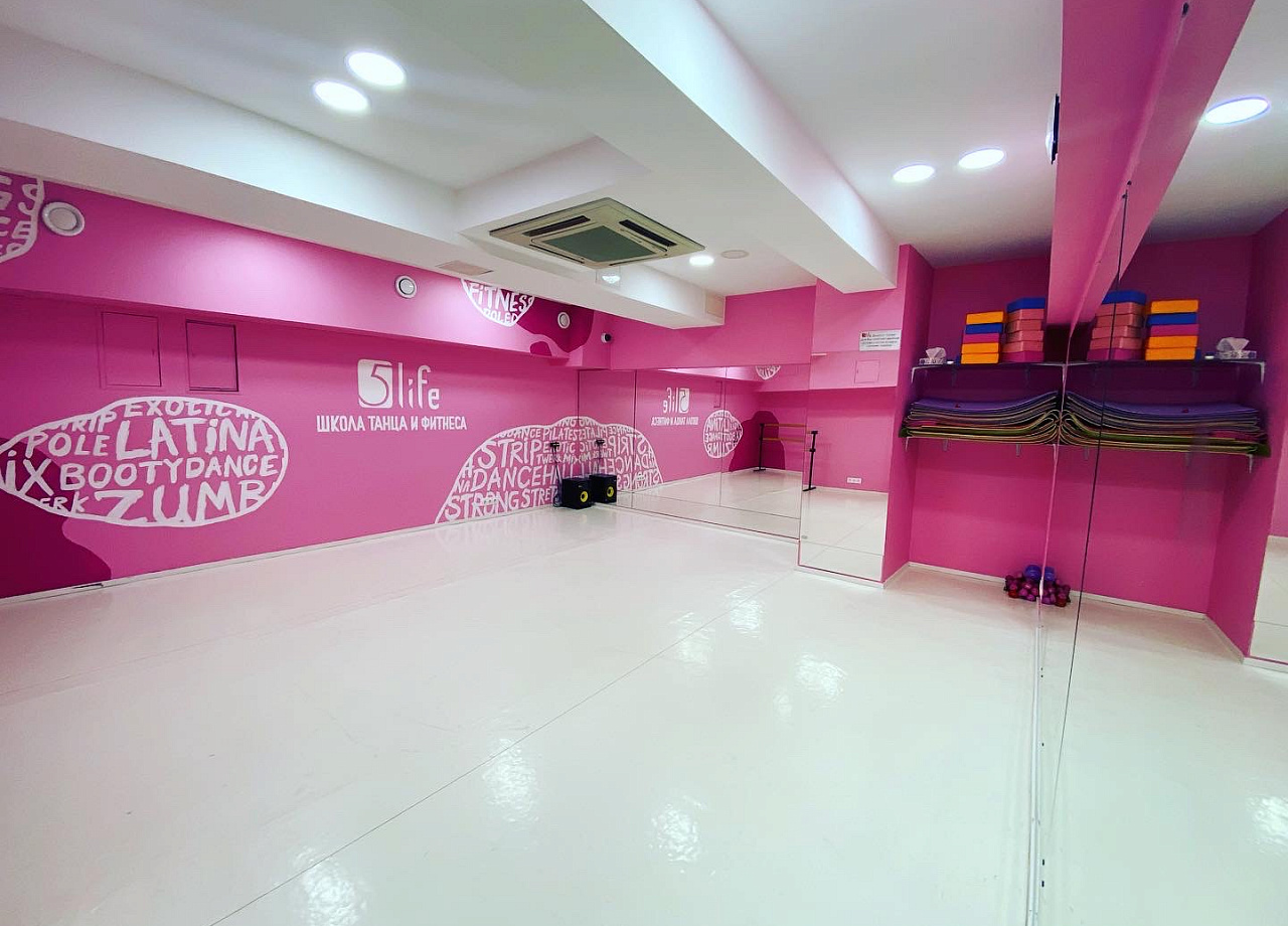 Розовый зал подходит для меня и моей небольшой группы по йоге. Зал компактный, но 4-5 человек на ковриках размещаются свободно. Хорошая вентиляция. Прекрасный ремонт, очень хорошее напольное покрытие. И что важно для нас - хорошая звукоизоляция. Студия 5Life - единственное место, где мне согласились предоставить зал с 7 утра! Для йоги утренние часы наиболее полезны. Персонал школы очень предупредителен, проблем никогда не возникало. Другого места уже не ищу.