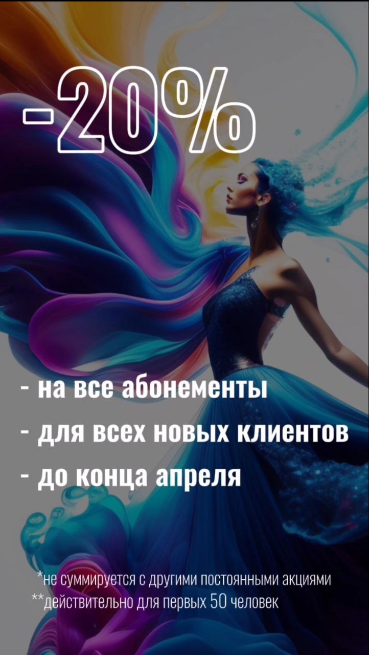 АКЦИЯ АПРЕЛЯ. -20% на все абонементыСкидка действительна на все абонементы для всех, кто пришел к нам первый раз.